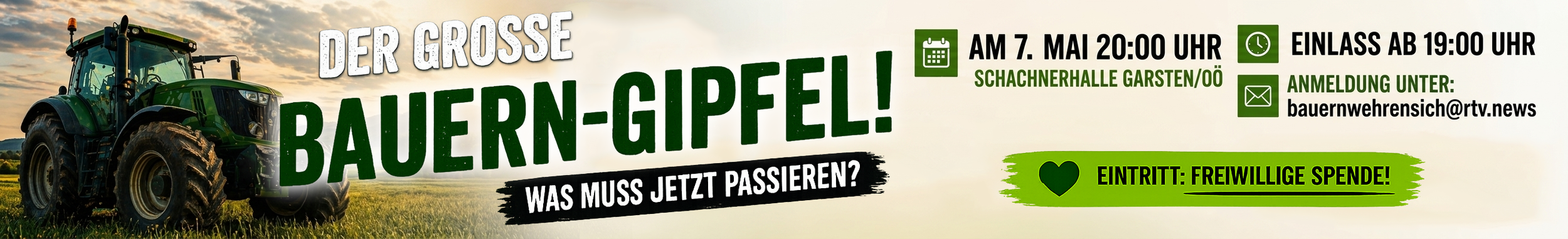 +++ Der große Bauern-Gipfel! / Sei dabei – es geht um unsere Bauern, unsere Zukunft und unsere Versorgung! / Anmeldung: bauernwehrensich@rtv.news