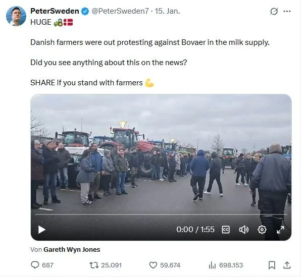 Die Maßnahme ist Teil der dänischen Klimastrategie, die Emissionen in der Landwirtschaft deutlich senken soll. Allerdings zeigt sich in der Praxis bereits ein kritisches Bild: Zahlreiche Landwirte berichten von gesundheitlichen Problemen bei ihren Kühen nach der Bovaer-Fütterung, darunter Fieber, Magenschmerzen, Aufblähung des Pansens und sogar Todesfälle. In einem dokumentierten Fall begann ein Landwirt Anfang Oktober 2025 mit Bovaer, drei Kühe entwickelten hohes Fieber, zwei hatten Rumenprobleme, und eine Kuh starb. Pro betroffener Kuh entstand ihm ein finanzieller Schaden von etwa 10 000 Dänischen Kronen (≈1.300 €), wobei dies ein Einzelfall ist.